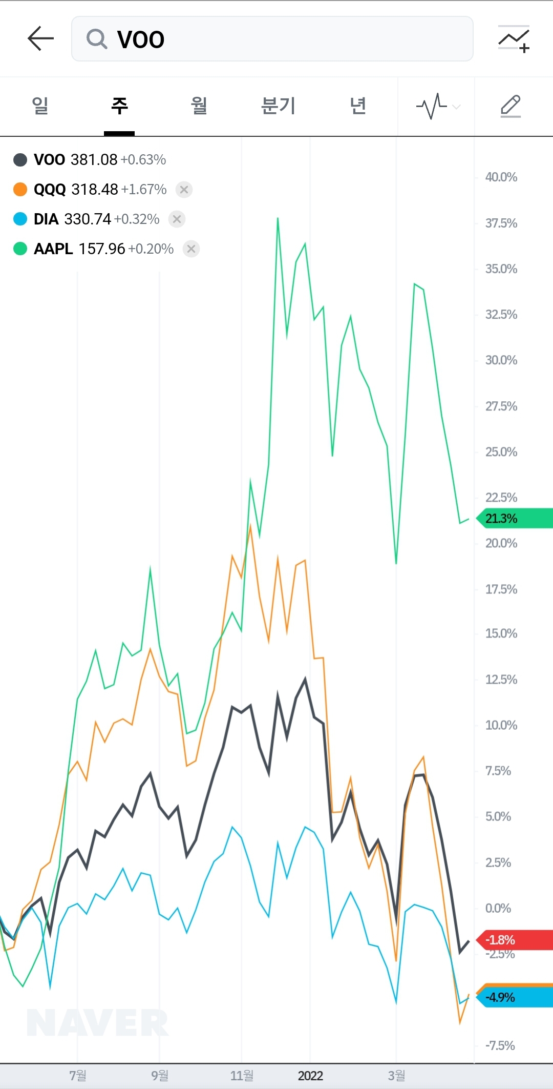 dia voo qqq spy구성종목 미국주식펀드들 공통은 마소 etf
