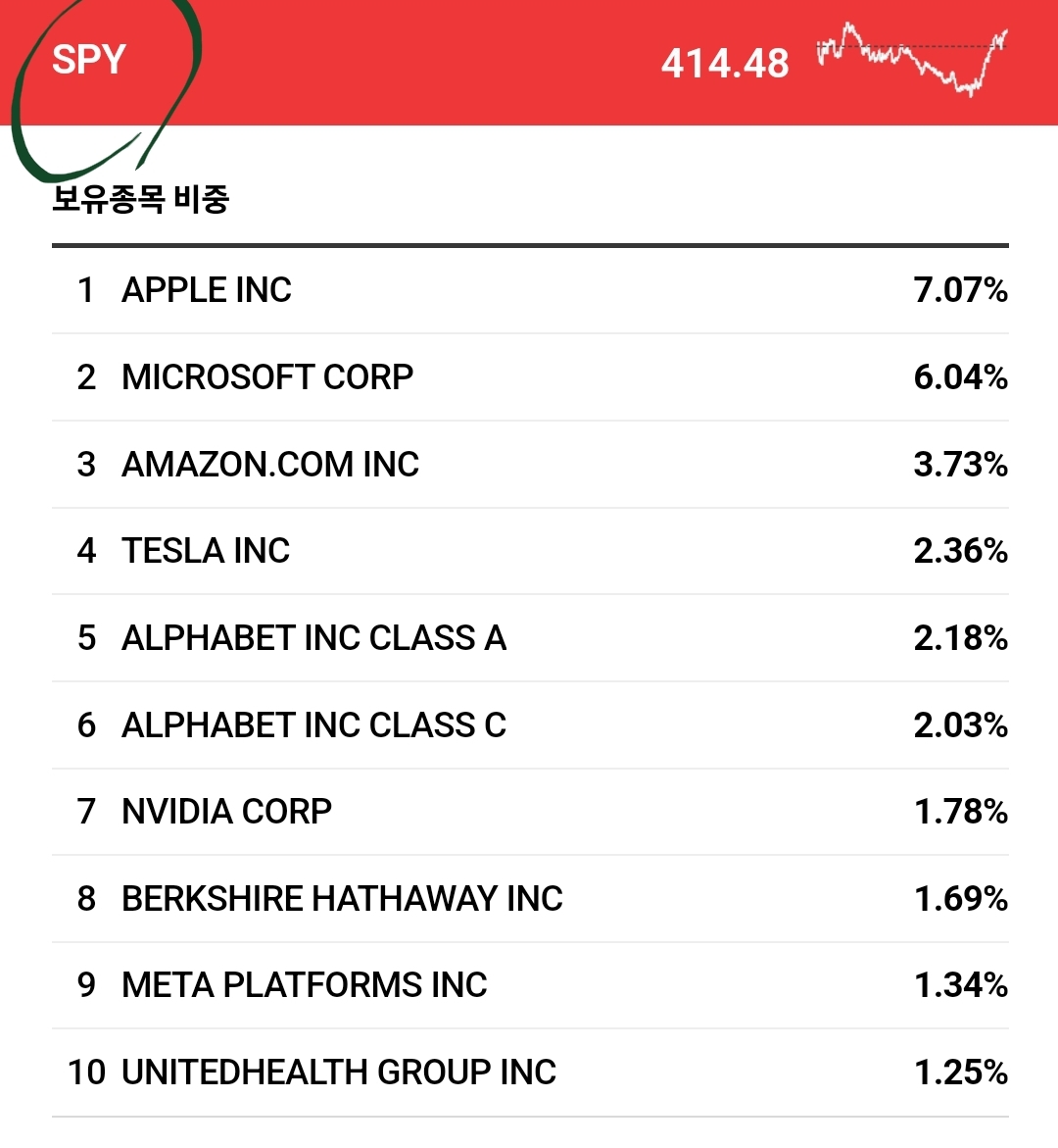 voo와 spy 에스엔피 로 만들어서 구성종목의
