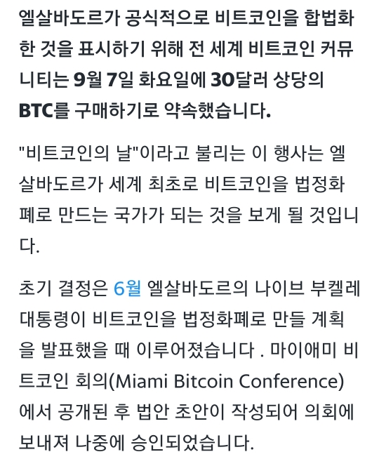 9월 7일 화요일에 30달러 상당의 BTC를 구매하기로 약속했습니다.