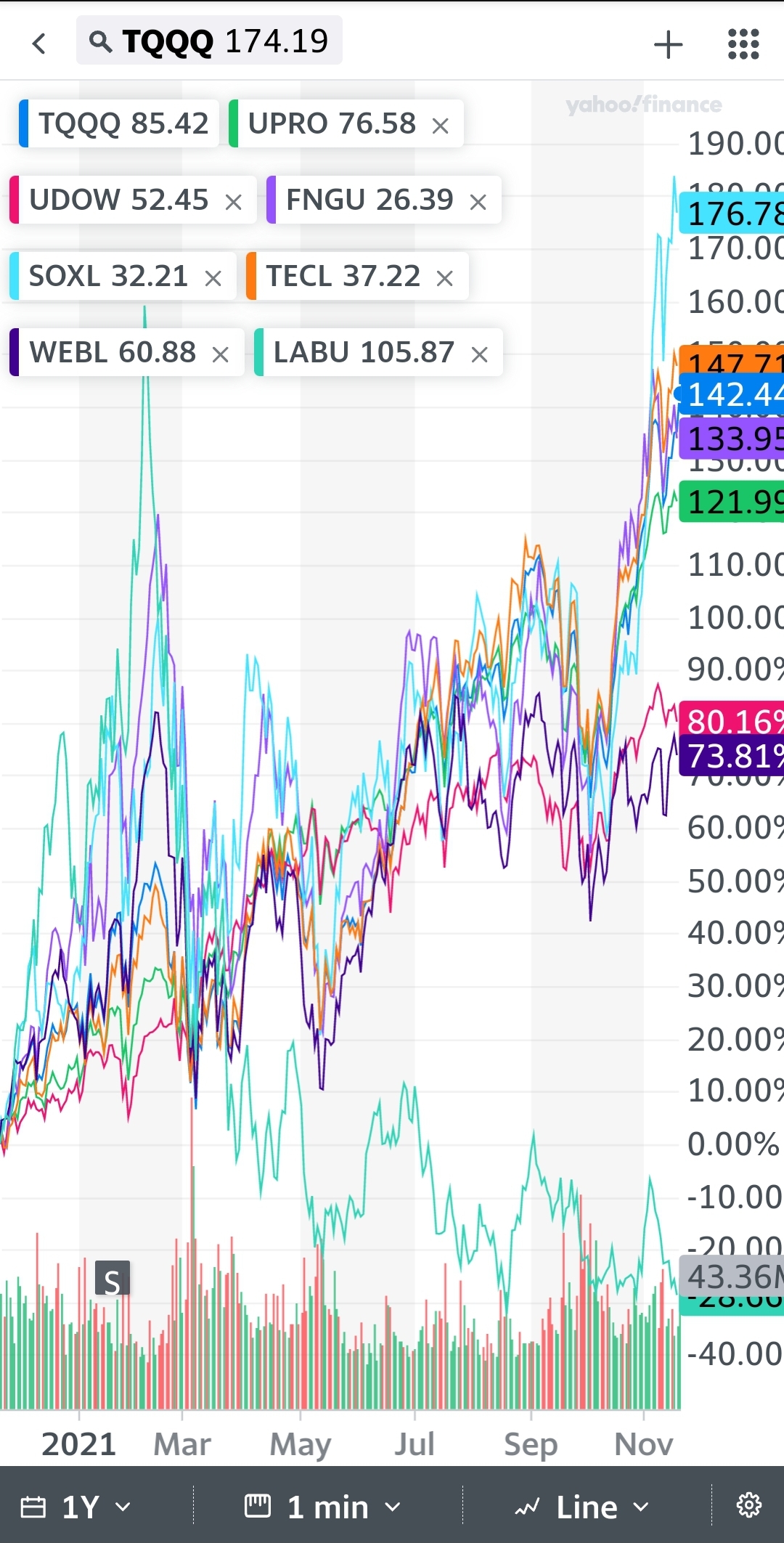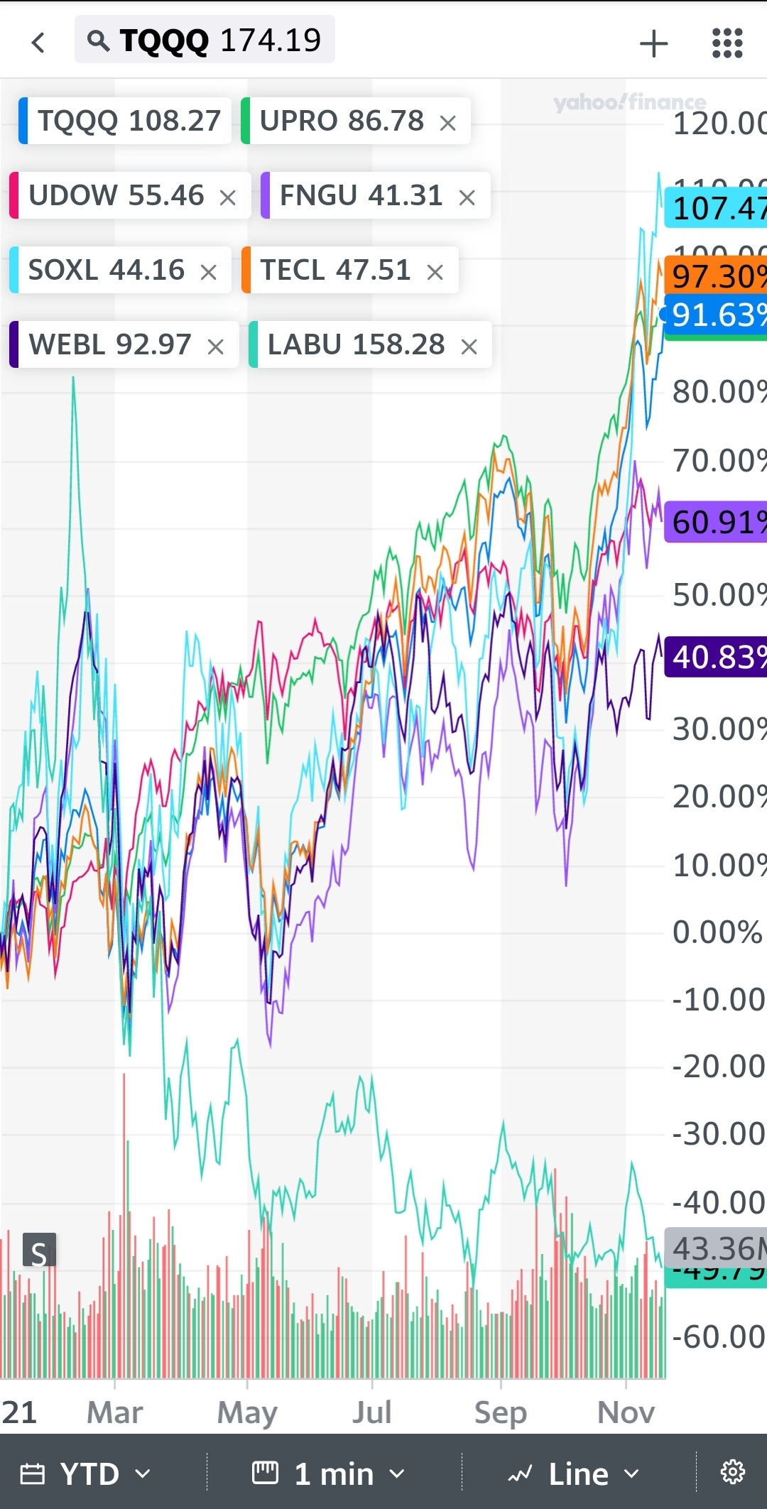 TQQQ 수익률 비교 fngu upro udow tecl webl soxl labu