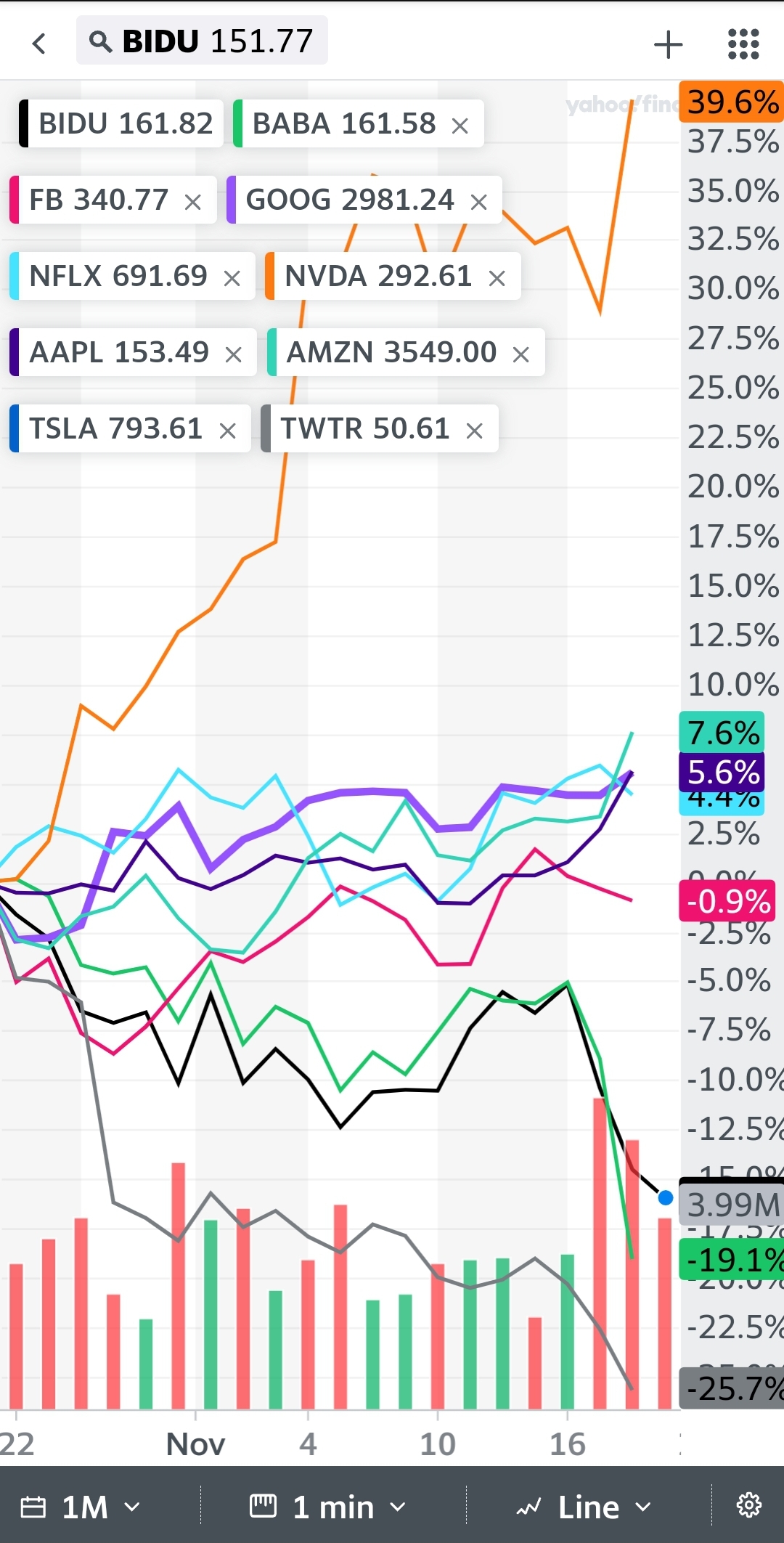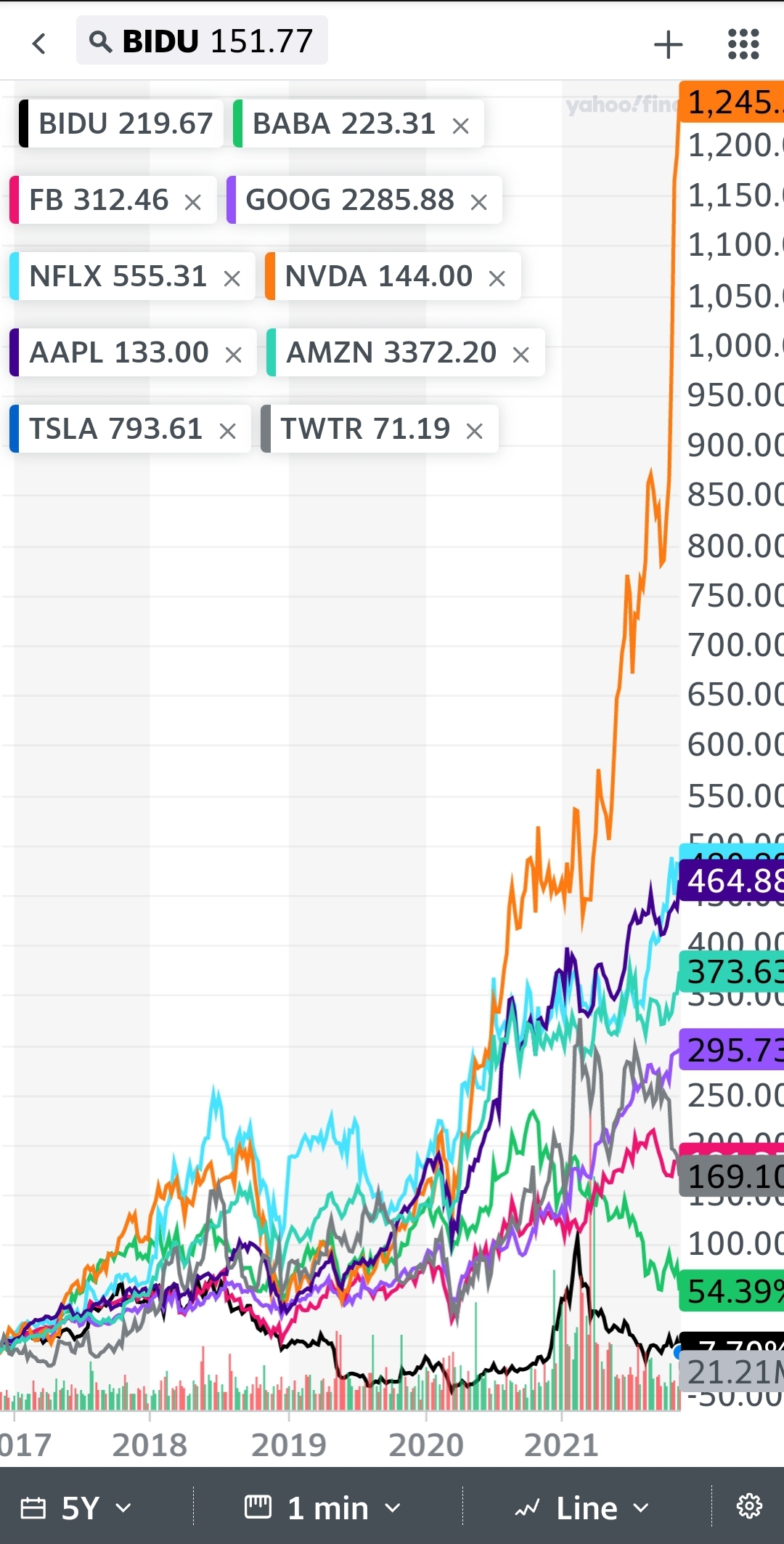 수익률비교 엔비디아 바이두 페북 구글 아마존 테슬라 애플 넷플릭스 알리바바 트위터 앤비디아 패북 태슬라