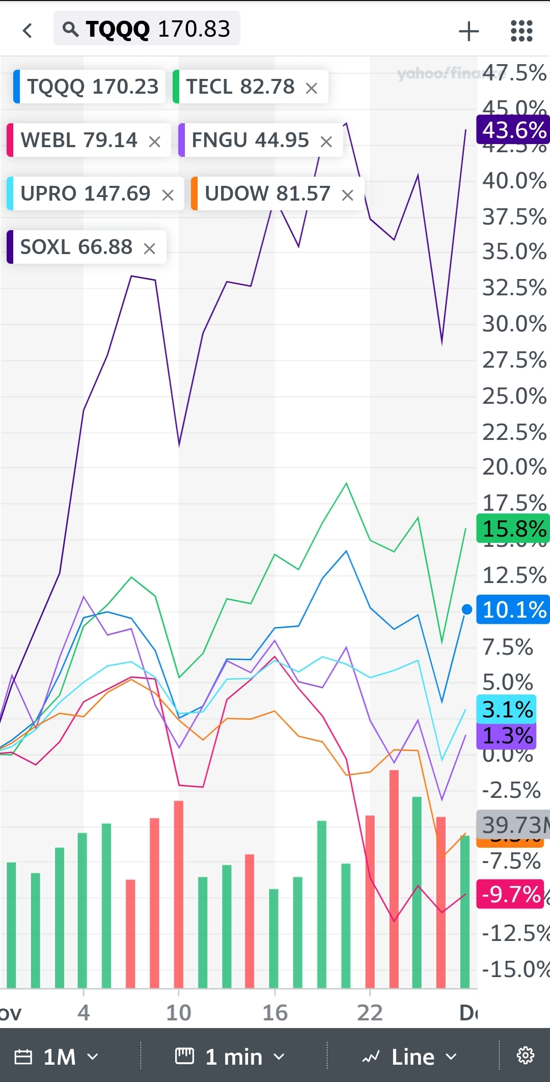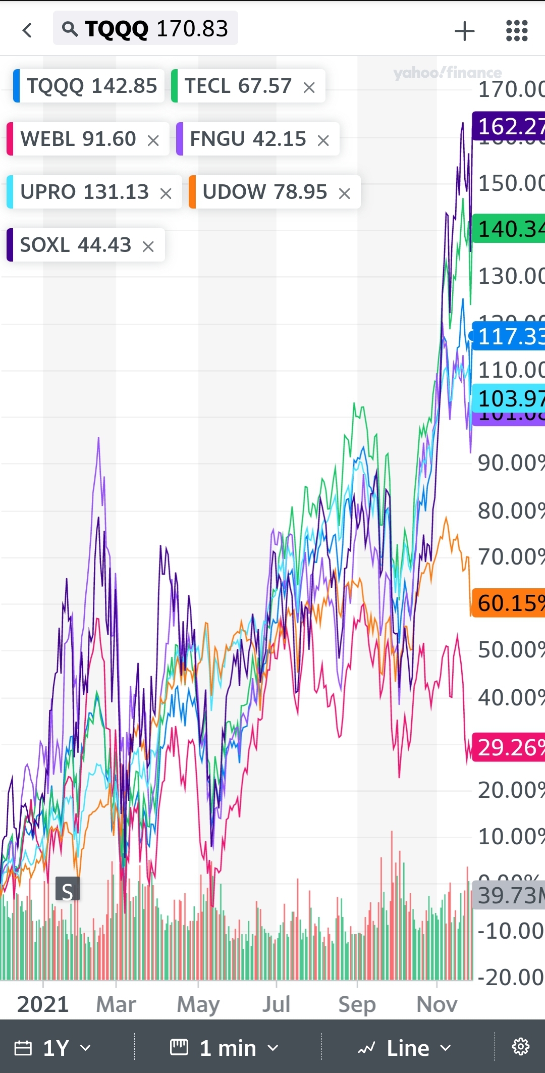 soxl 변동성이 제일 심한것으로 알고 있습니다.