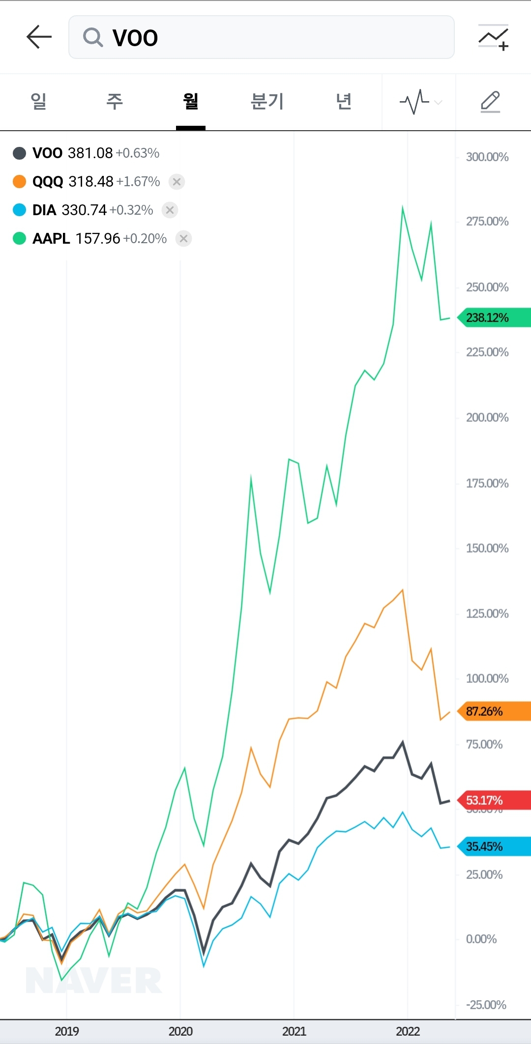 dia voo qqq spy구성종목 미국주식펀드들 공통은 마소 etf