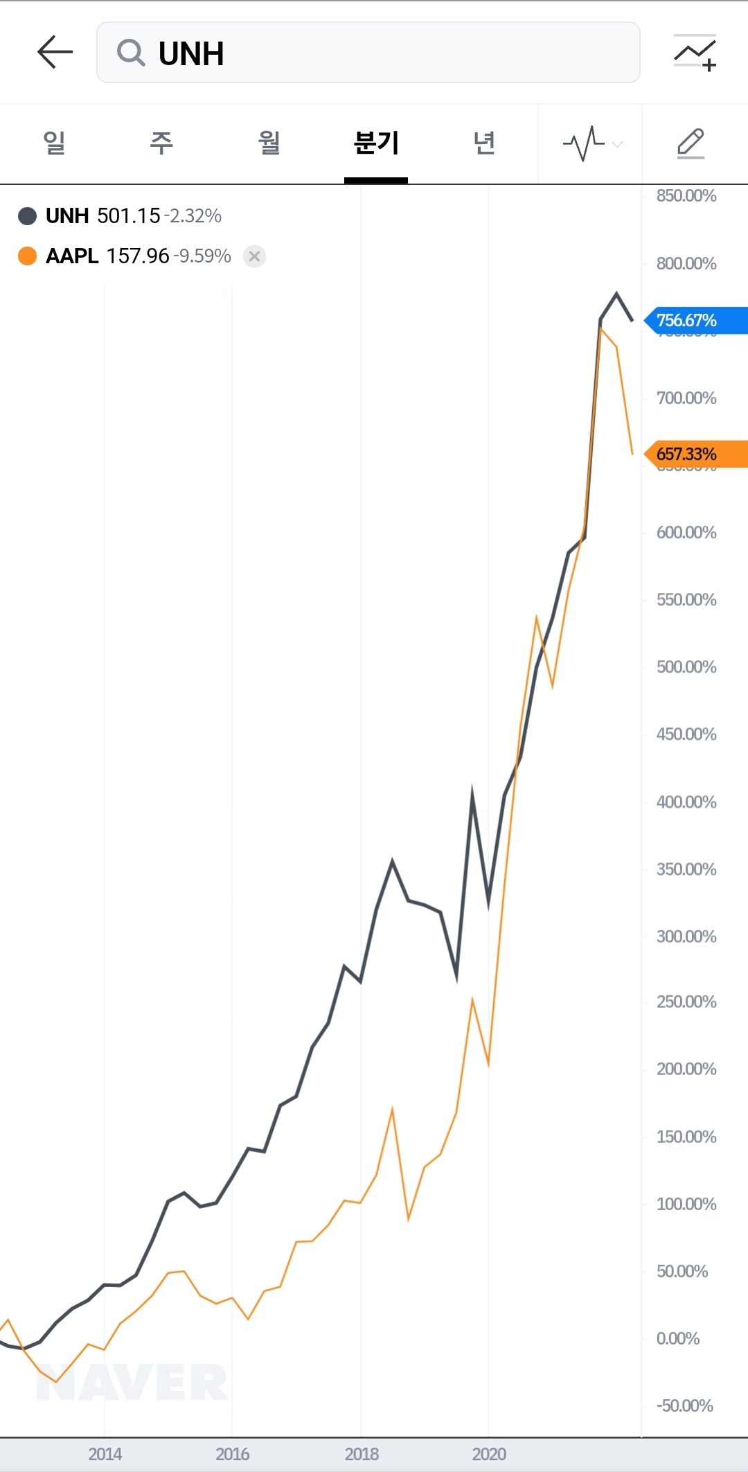 오히려 애플 보다 더 올랐어요