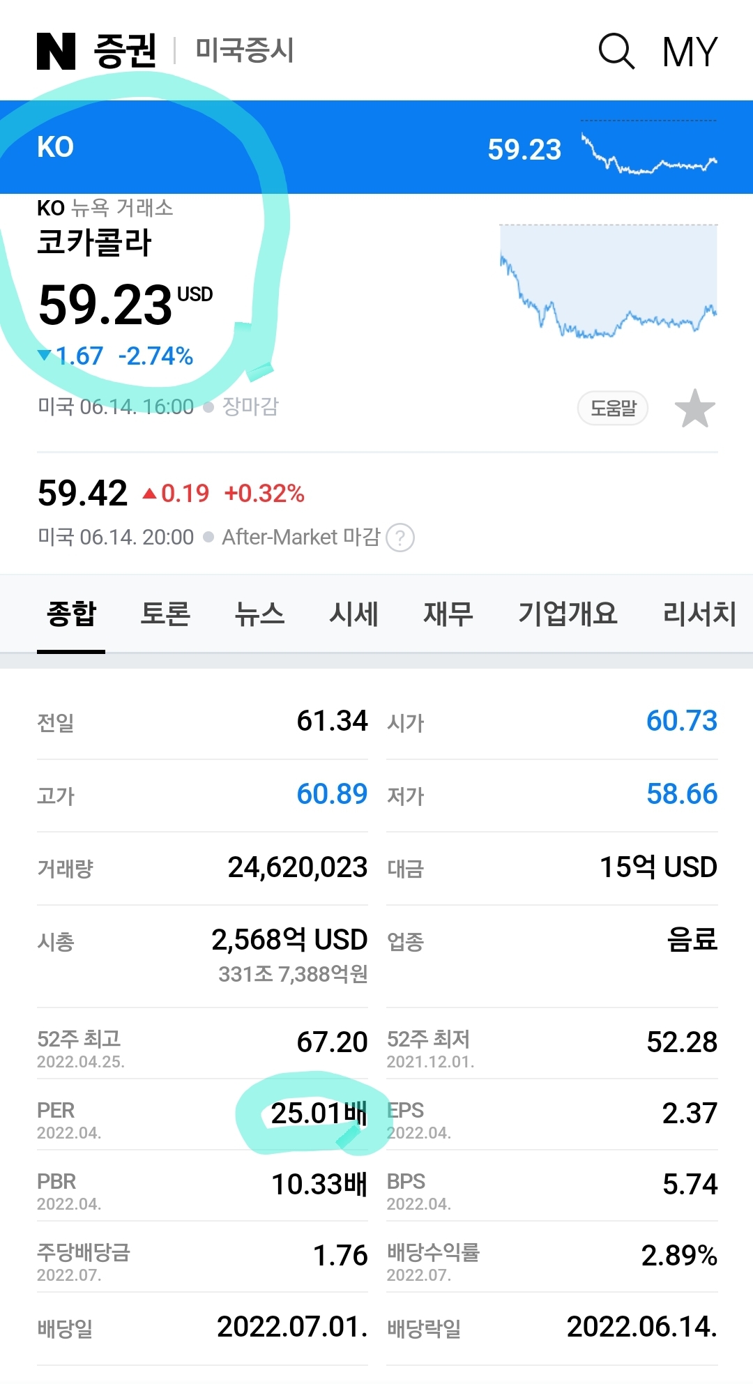 ㄱ코카콜라 per 20 넘나? 미국 주식
