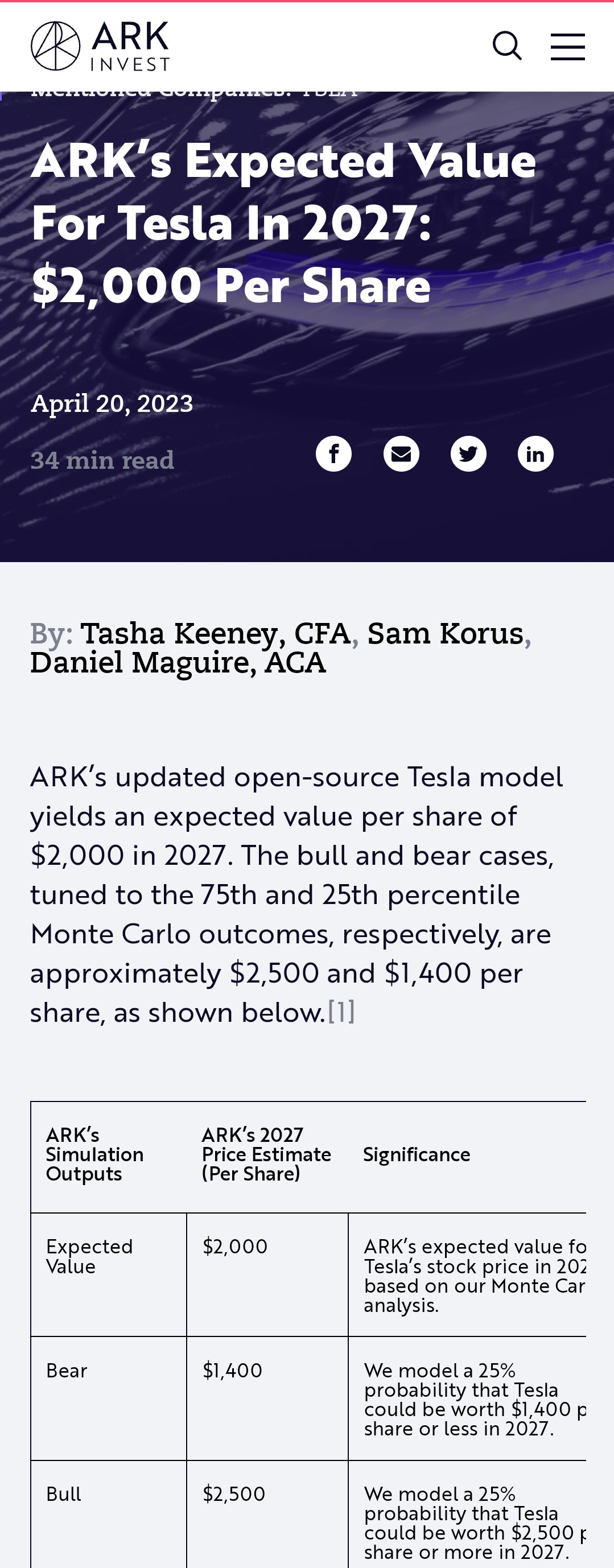 케시우드 의 ark 테슬라 예상 주가