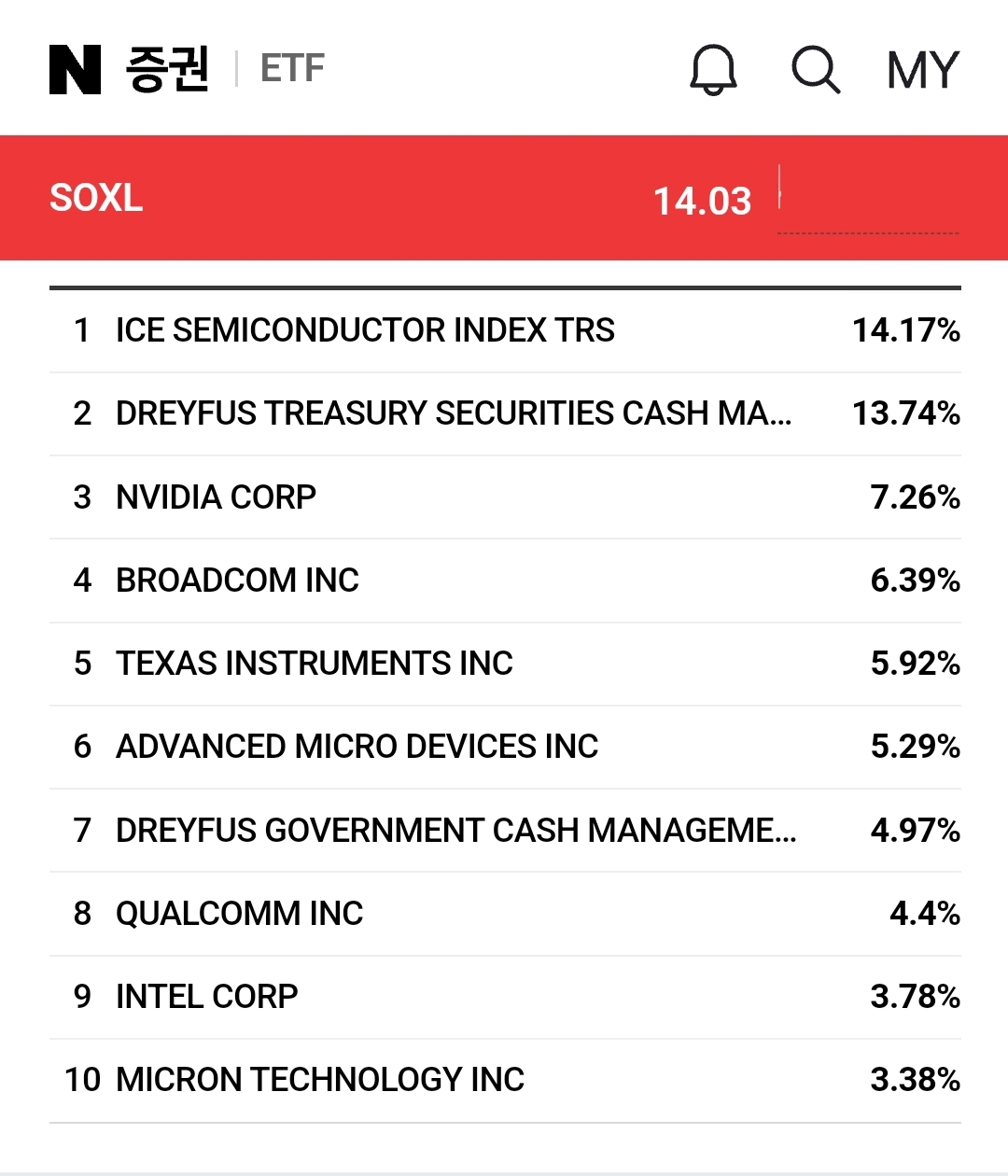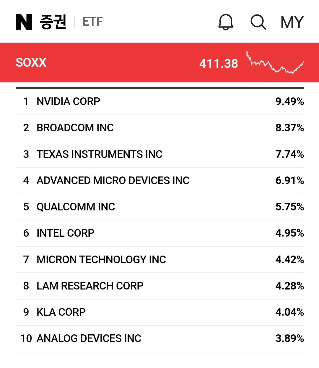 soxx soxl 미국 반도체 주식 구성종목들