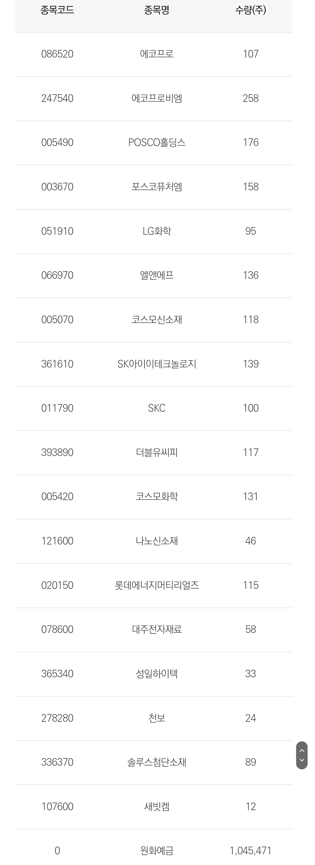TIGER 2차전지소재Fn ETF 구성 주식들 빳데리