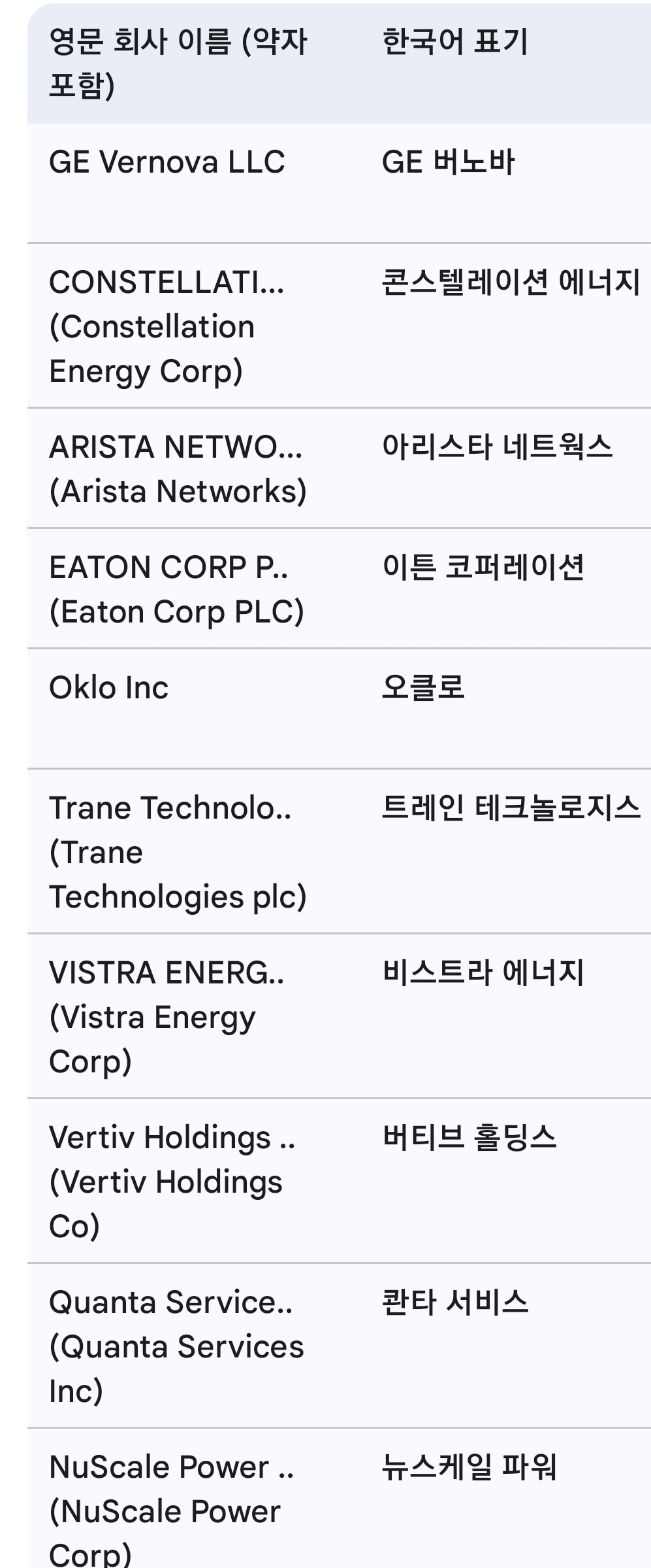 GE Vernova LLC : GE 버노바 (LLC는 유한책임회사를 의미하며 보통 생략)