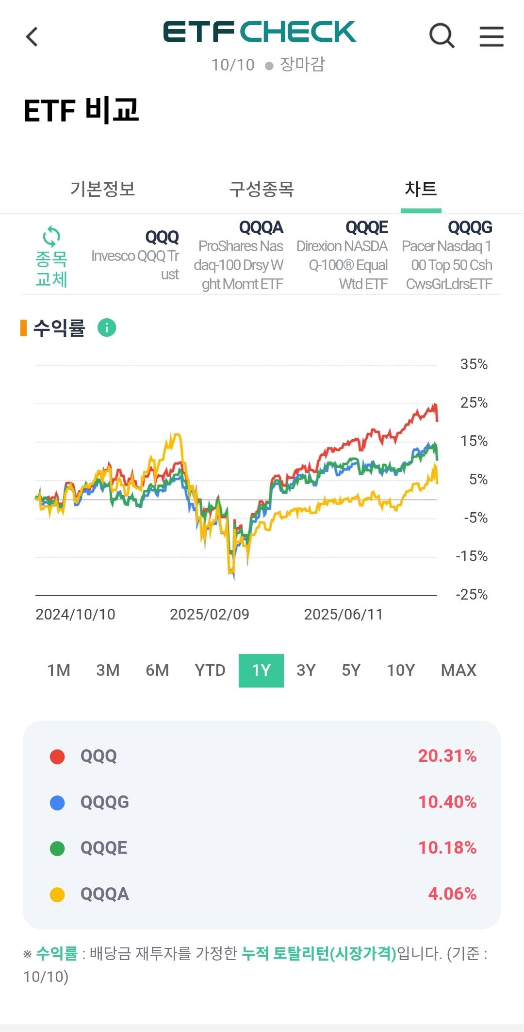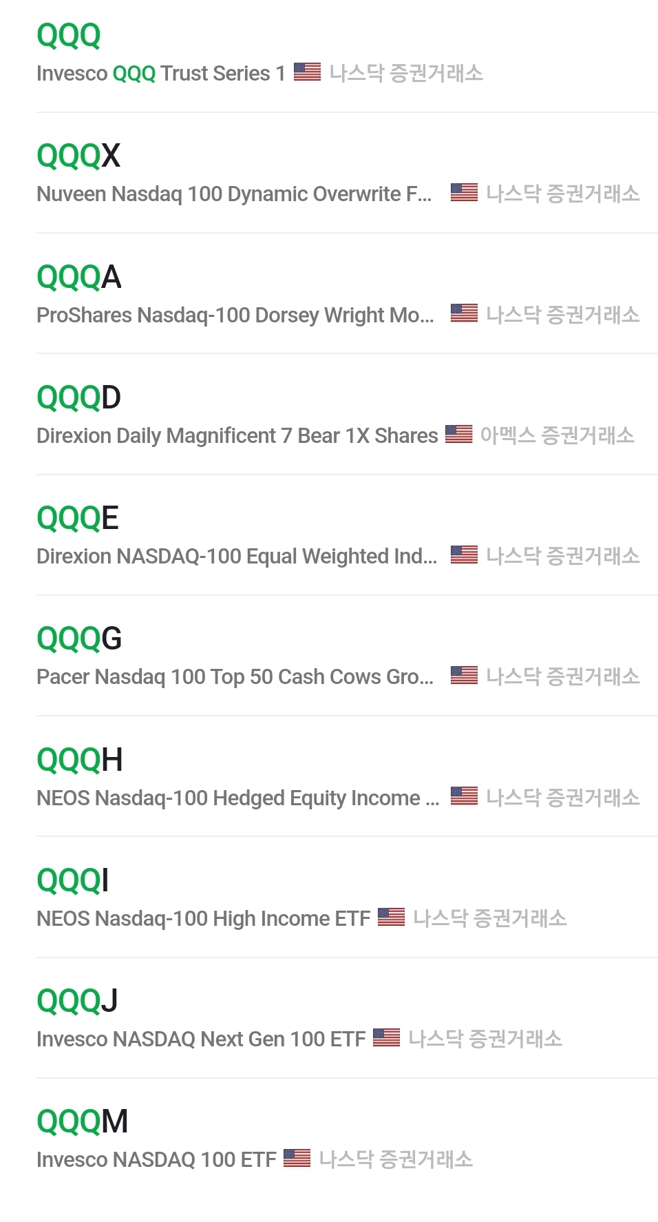 배당포함 수익률 비교qqq qqqa qqqe qqqg qqqh i j tqqq